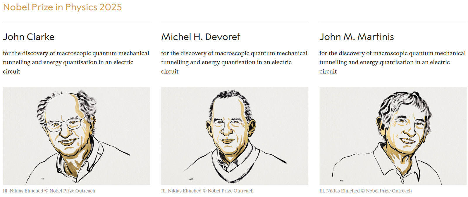 - Physics World: John Clarke, Michel Devoret and John Martinis Win the 2025 Nobel Prize for Physics