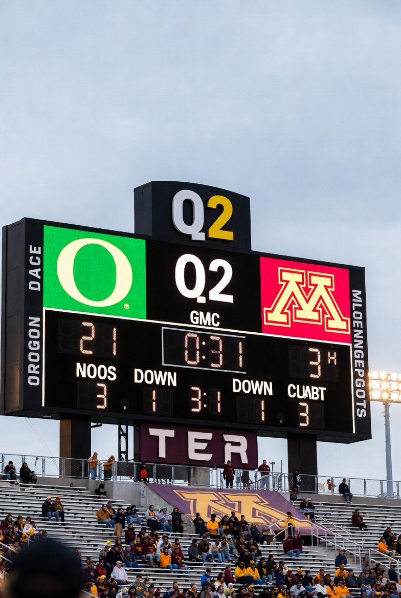 Oregon Ducks dominate Minnesota 21-3 in Q2! Dillon Gabriel shines with 2 TDs. Live score, key plays, stats & Big Ten implications. Click for real-time NCAAF analysis!